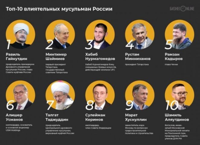 “Бизнес Online” ишбилармонлик нашри ўз талқинига кўра, Россиянинг энг катта таъсирга эга бўлган нуфузли мусулмонлари рейтингини эълон қилди.